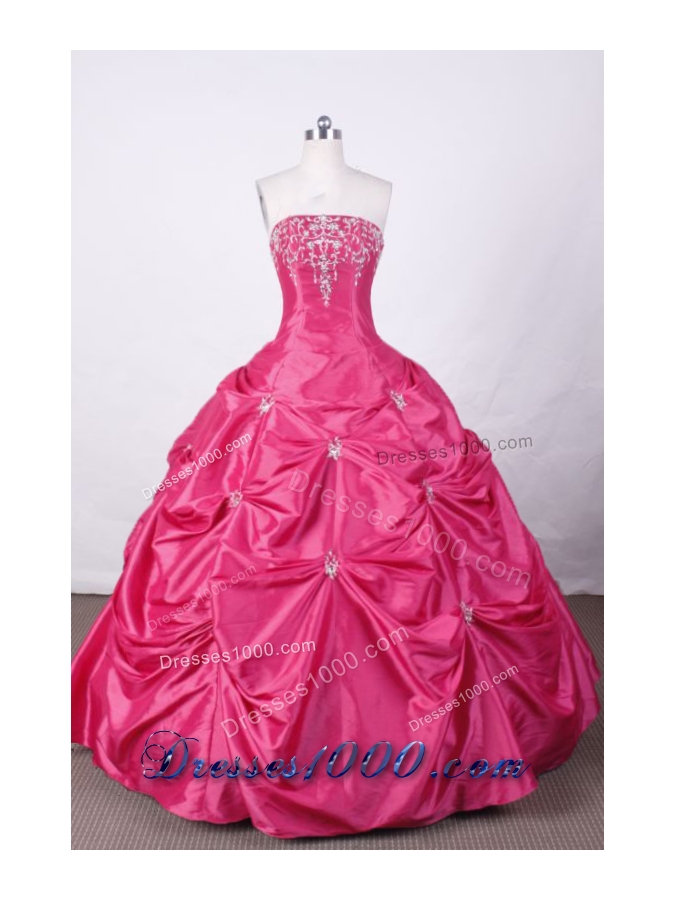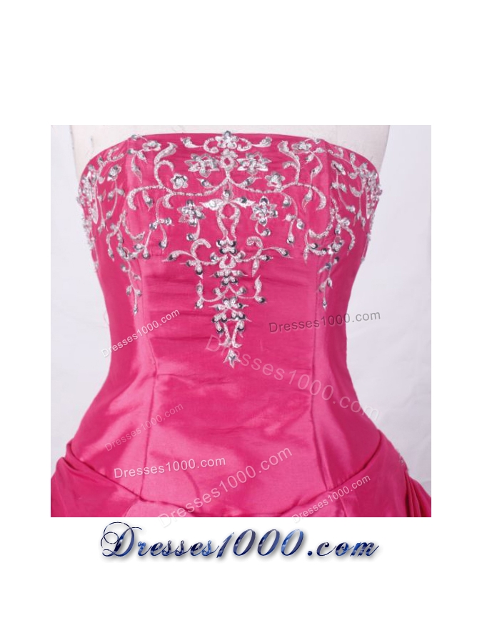 Swwet Ball Gown Strapless FLoor-Length Hot Pink Appliques And Beading Quinceanera Dresses