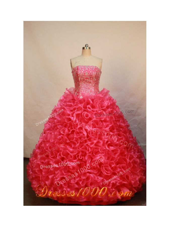 Luxurious Ball gown Strapless Floor-length Organza Red Quinceanera Dress