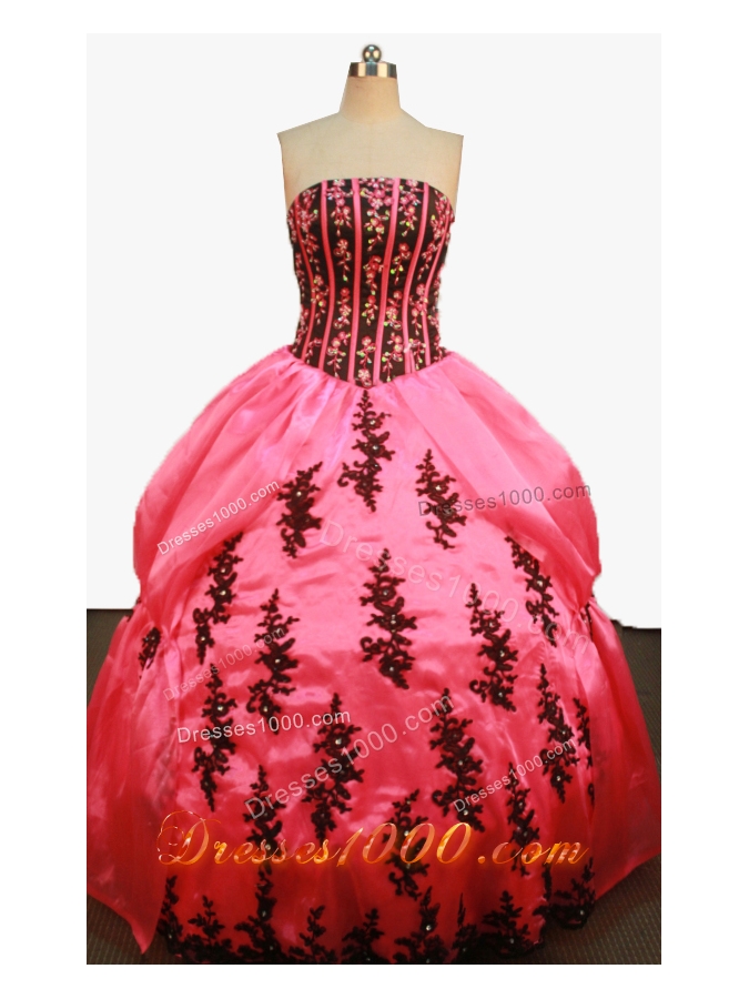 Beautiful Ball Gown Strapless Floor-Length Watermelon Beading and Appliques Quinceanera Dress