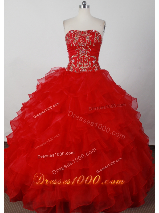 Elegant Ball Gown Strapless Floor-length Red Quinceanera Dresses