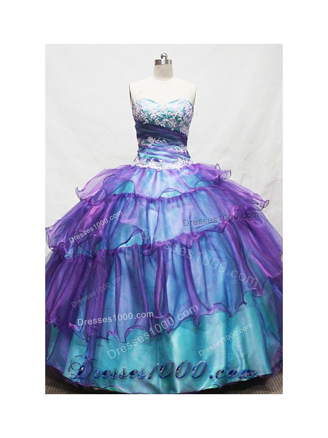 Gorgeous Ball Gown Sweetheart Floor-length Teal Appliques Quinceanera dress