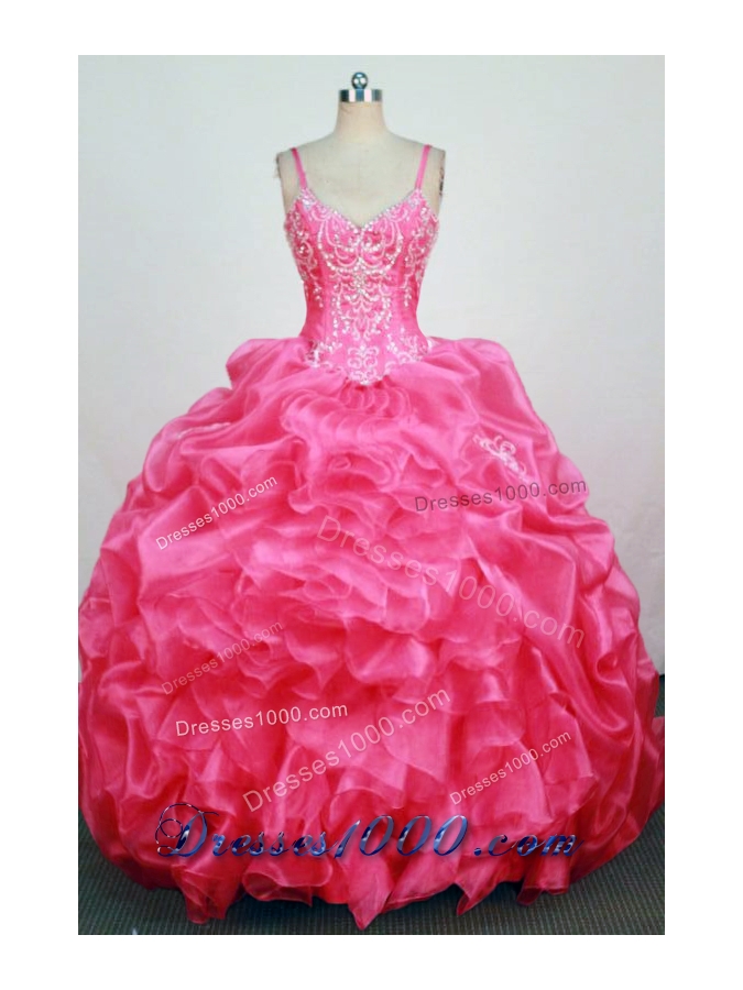 2013 Informal Straps Floor-Lengtrh Hot Pink Beading and Appliques Quinceanera Dresses