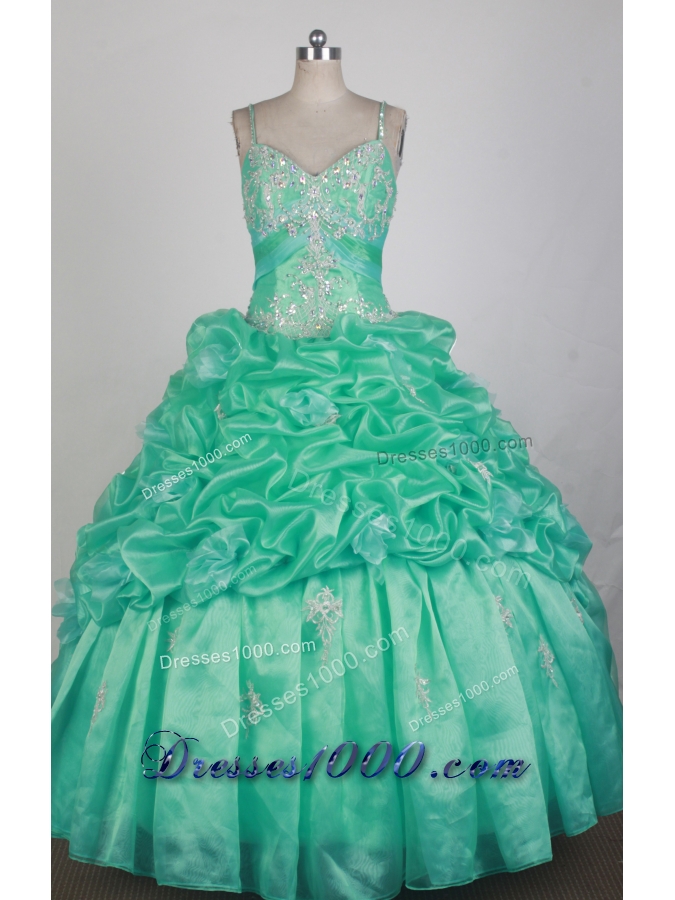 Beautful Ball Gown Straps Floor-length Teal Quinceanera Dress