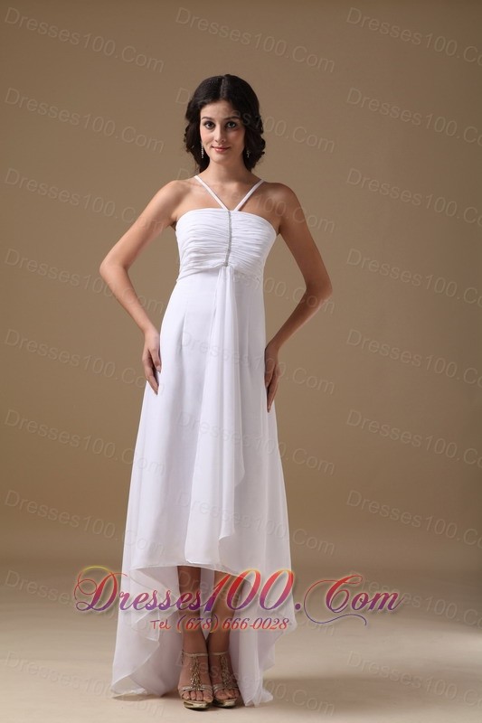 Ruched Halter Chiffon Beading Wedding Dress High Low