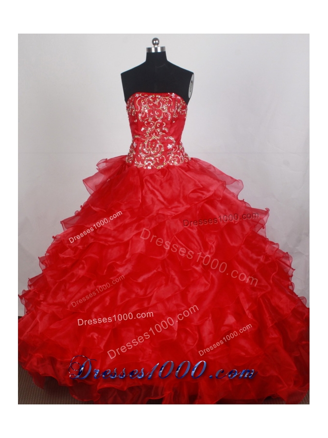 Beauty Ball Gown Strapless Brush Red Quincenera Dresses