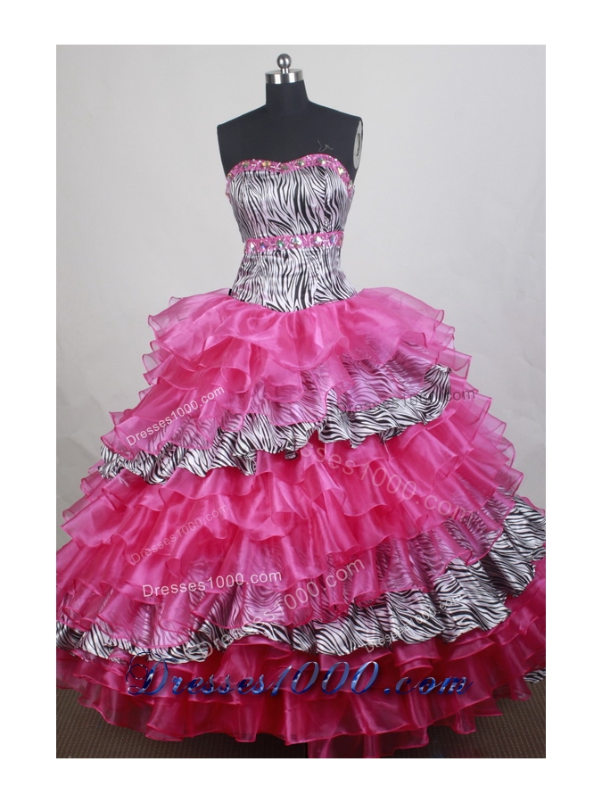 Stunning and dramatic. The strapless zebra print bodice hemed by the crystals is simple yet gorgeous. A combination of tiers of organza and the zebra print fabric gives you sense of delicate beauty. The corset back completes the look.