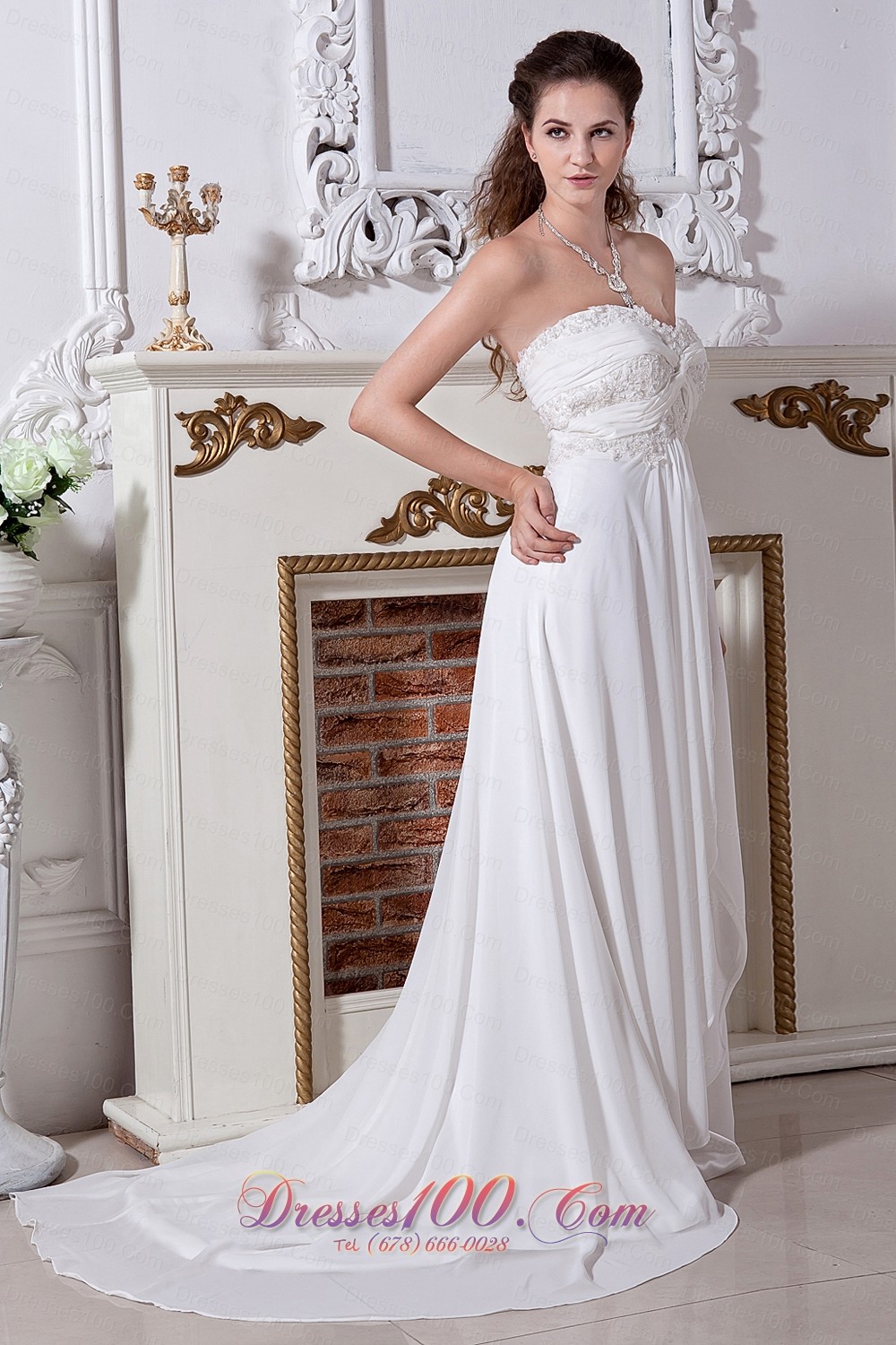 Strapless Chiffon Empire Embroidery Beaded Wedding Dress