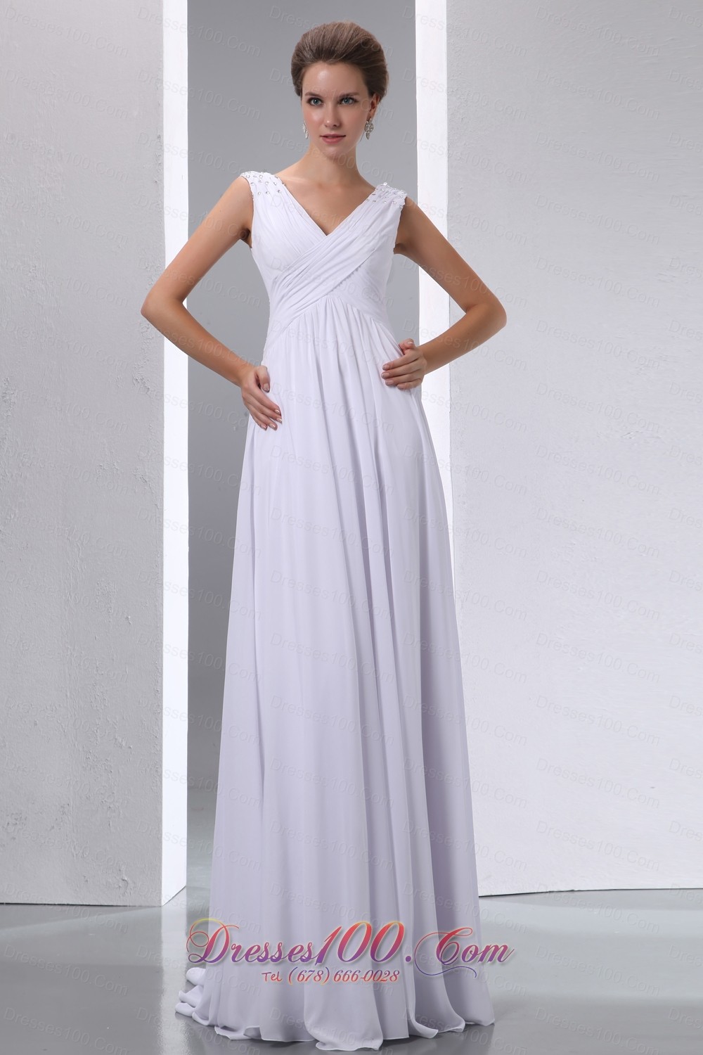 Empire V-neck High-class Beaded Chiffon Wedding Dress