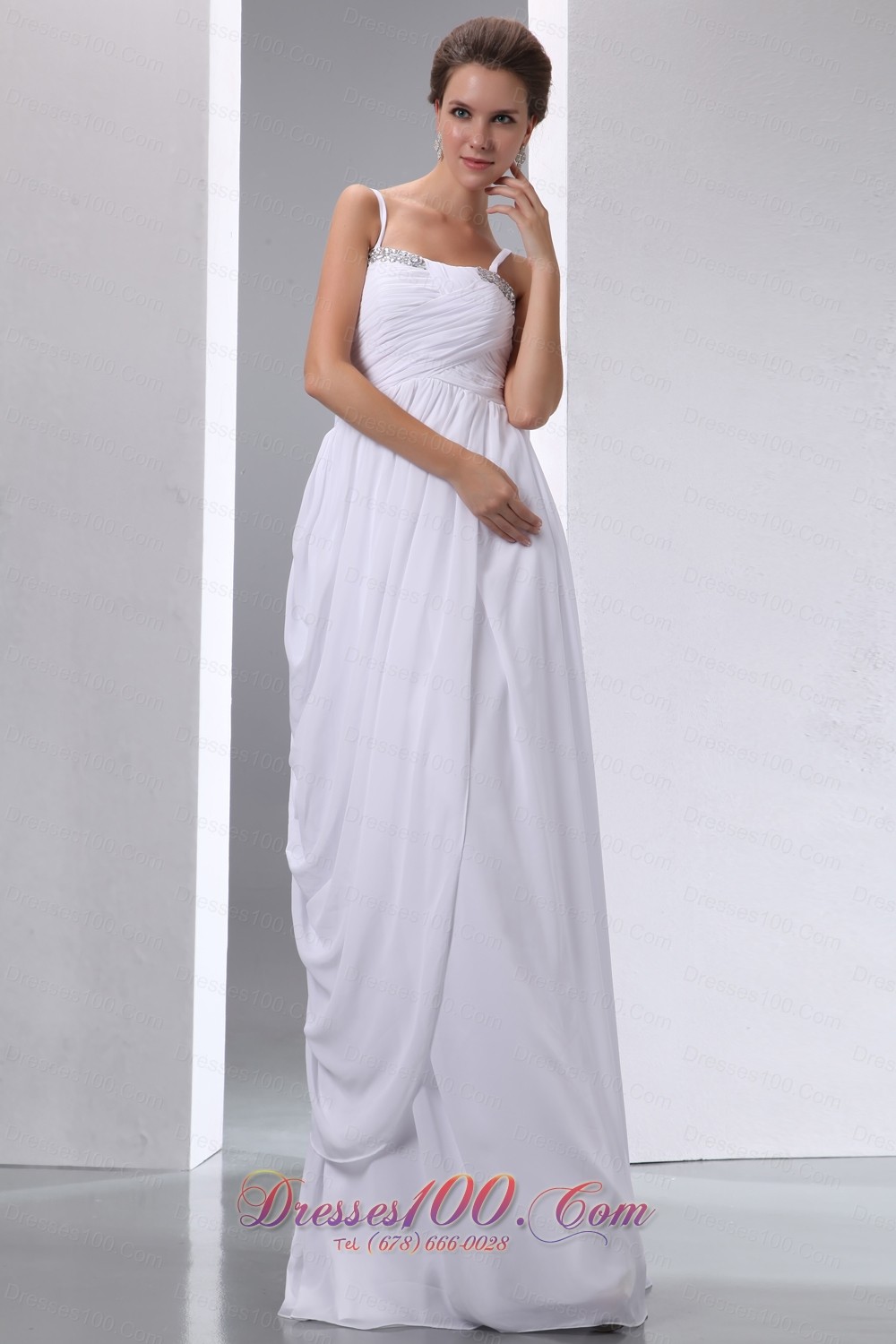 Column Spaghetti Straps Beaded and Ruched Wedding Dress