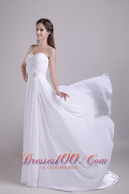 Sweetheart Ruched Train Chiffon Beading Bridal Gowns