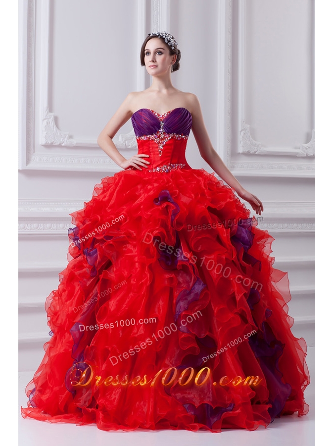 Fashionable Sweetheart Beading and Appliques Multi-color Quinceanera Dress with Ruffles