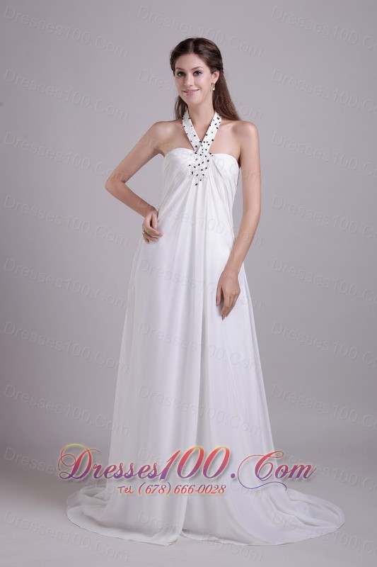 Impressive Halter Chiffon Beaded Beach Wedding Dress