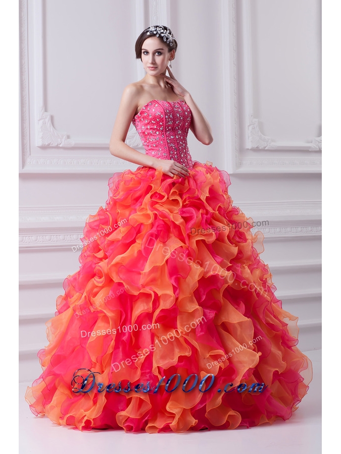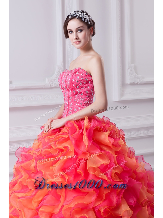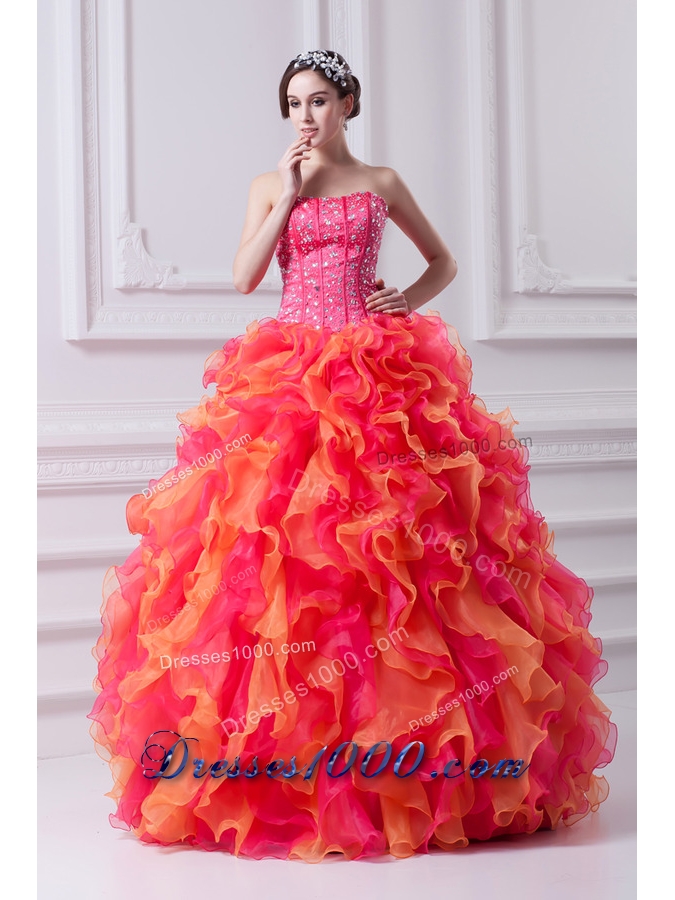 2014 Spring Puffy Multi-color Strapless Beading Quinceanera Dress with Ruffles