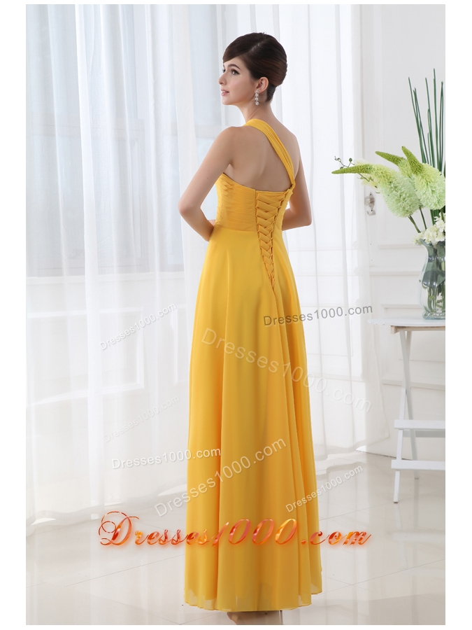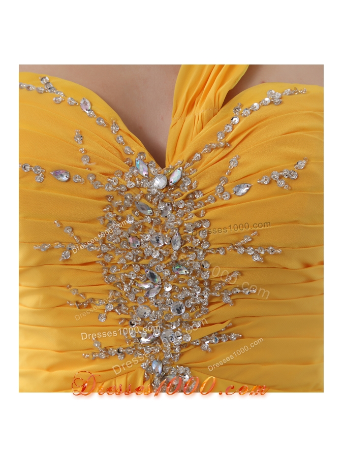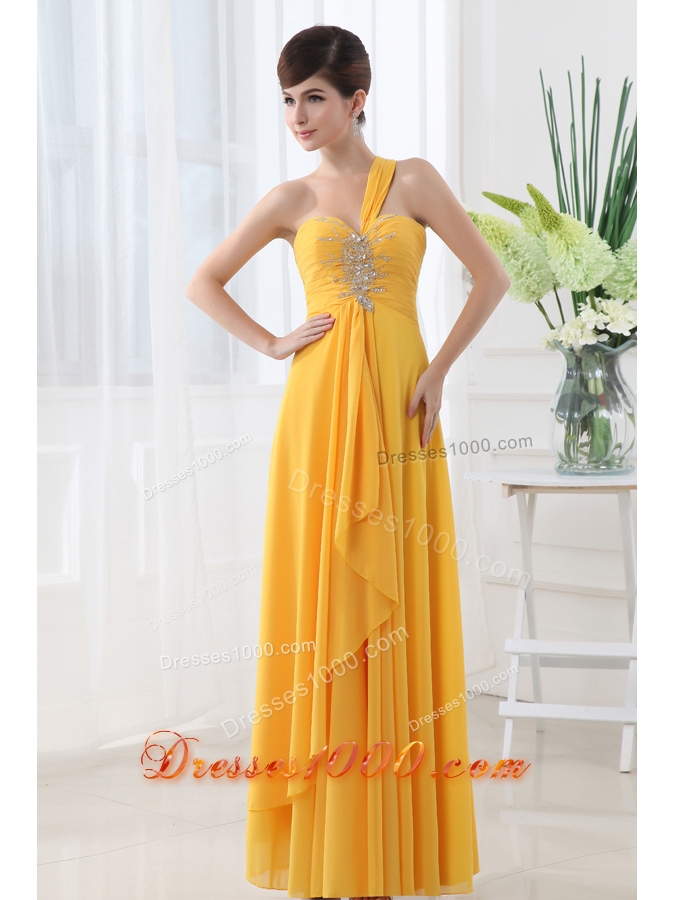 Empire Gold One Shoulder Beading and Ruching Chiffon Prom Dress