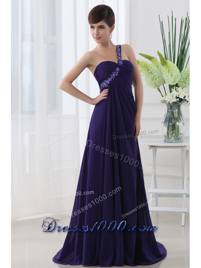 Empire One Shoulder Brush Train Appliques Purple Prom Dress