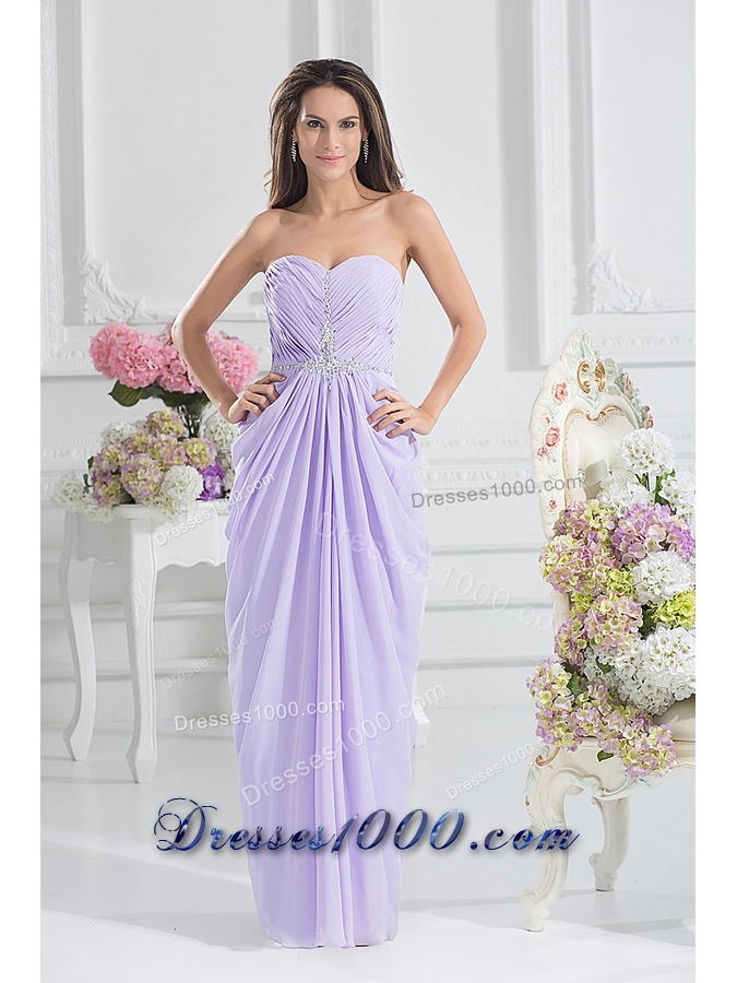 Column Sweetheart Floor-length Ruching Lavender Prom Dress