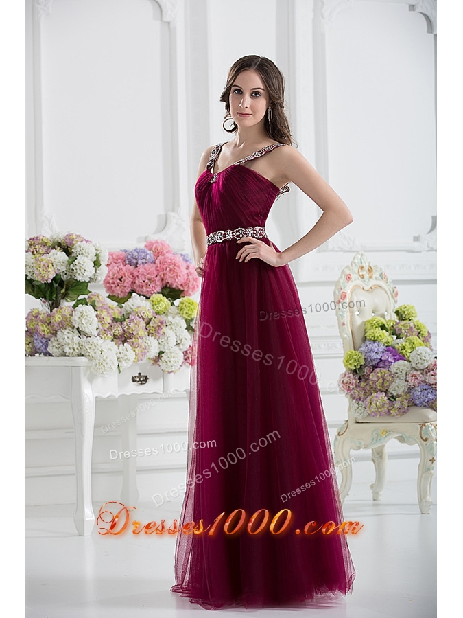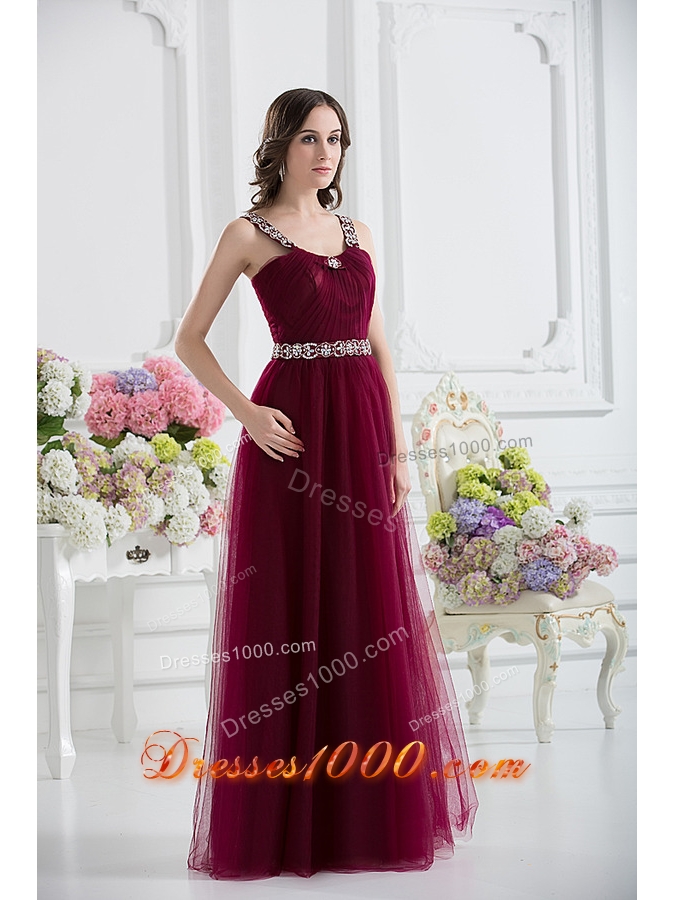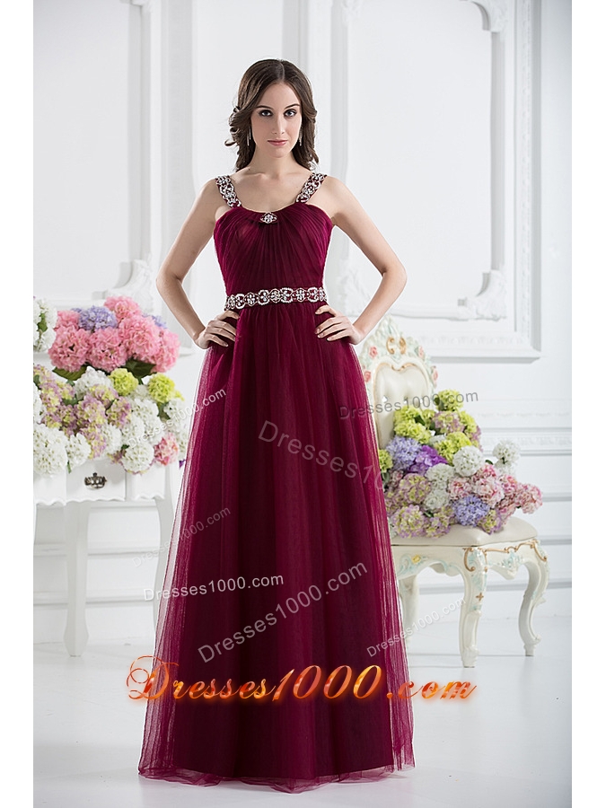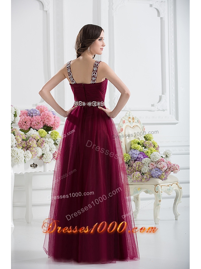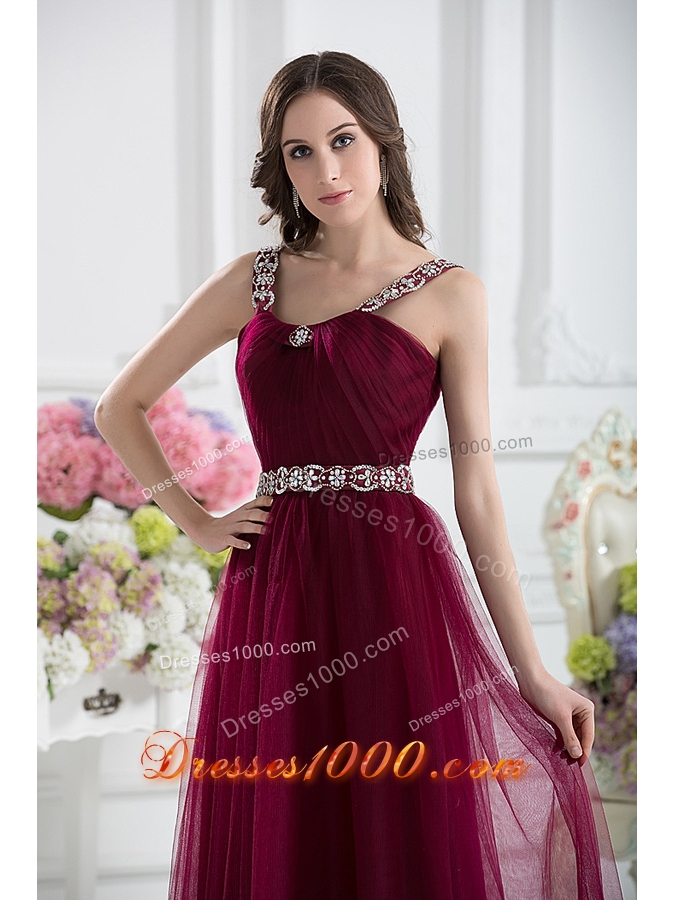 Wine Red Straps Empire Ruching and Beading Prom Dress with Belt