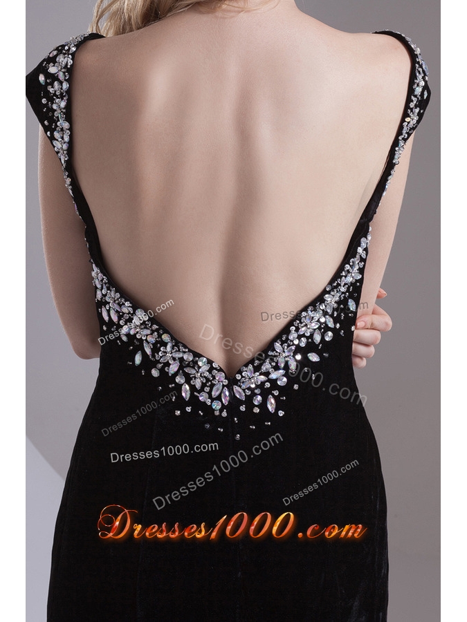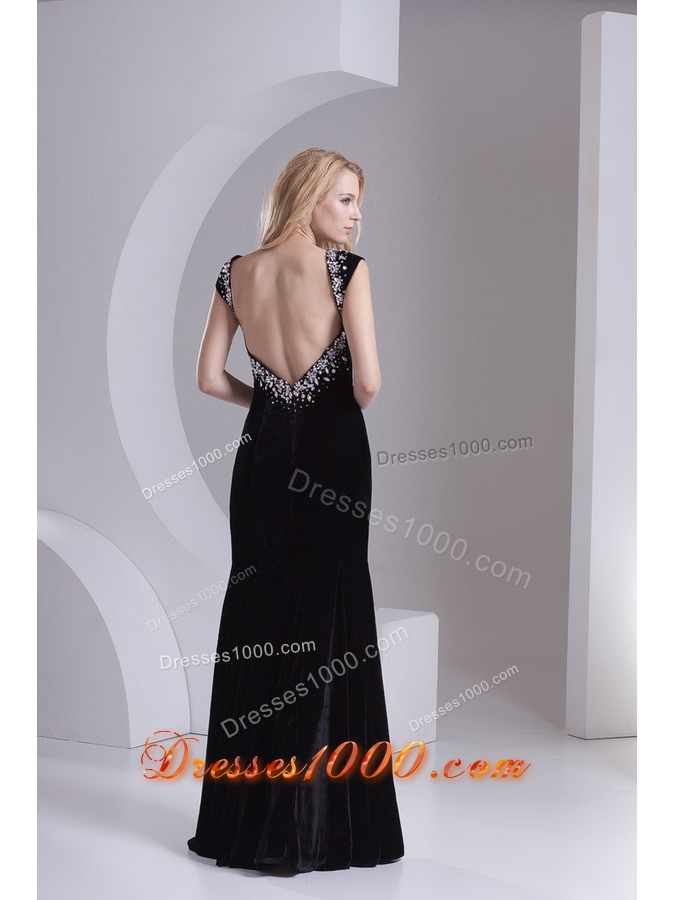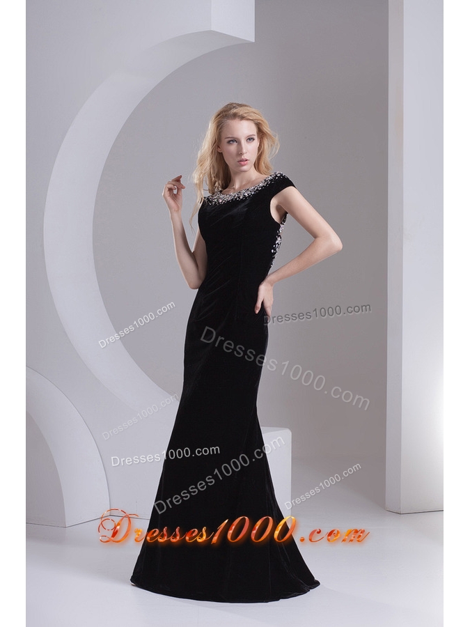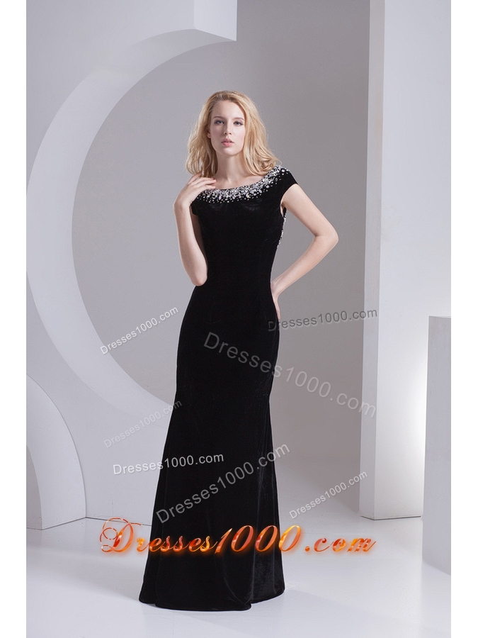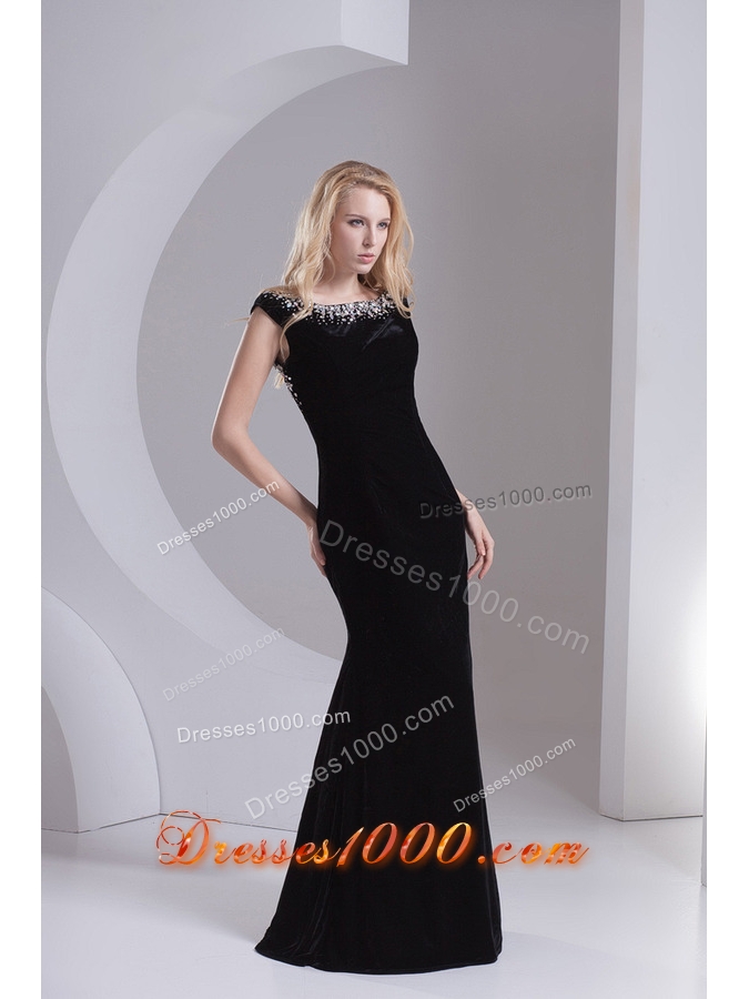 Empire Cap Sleeves Scoop Beading Floor-length Prom Dress