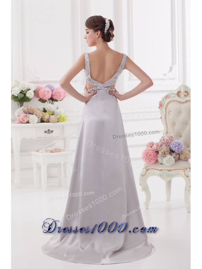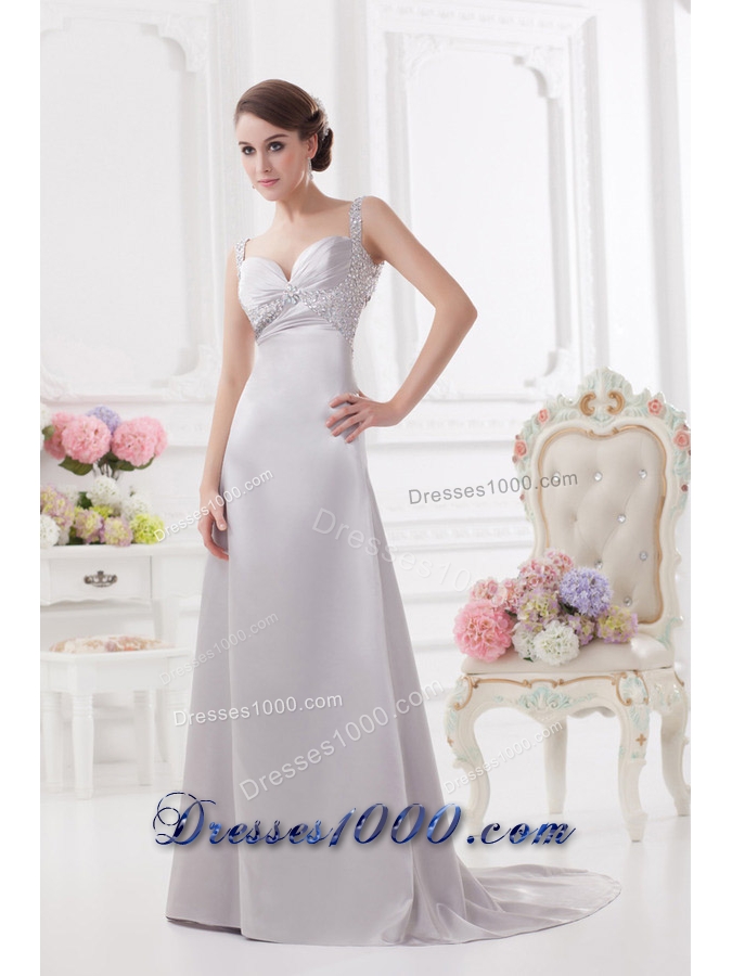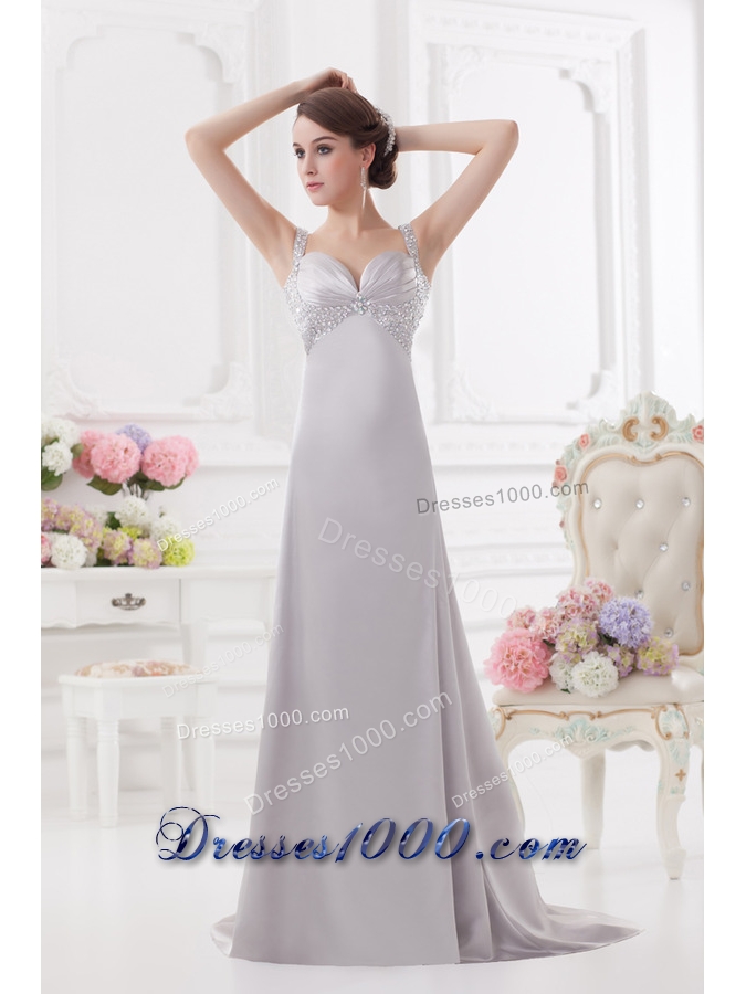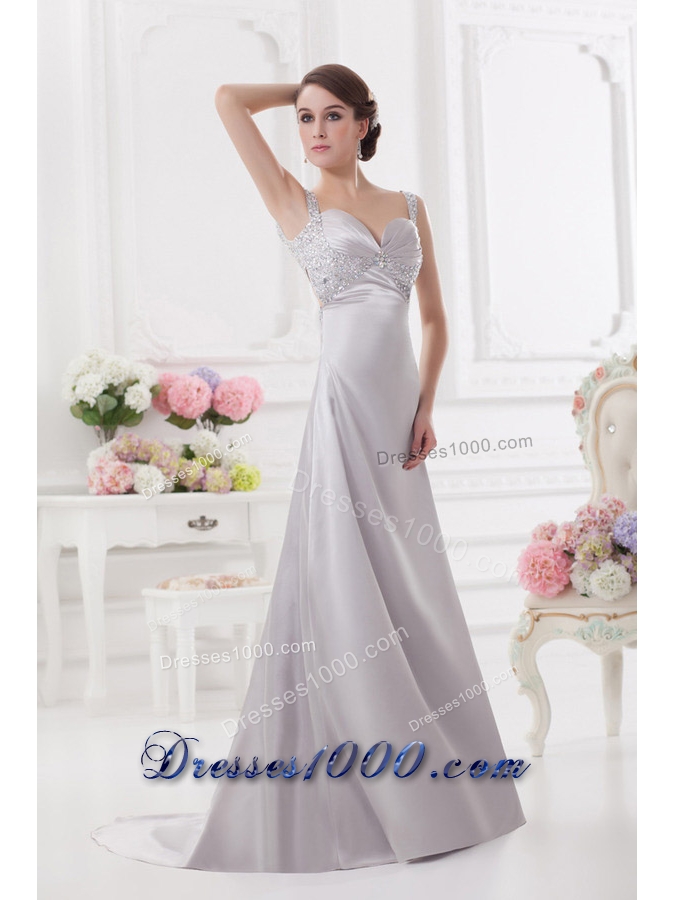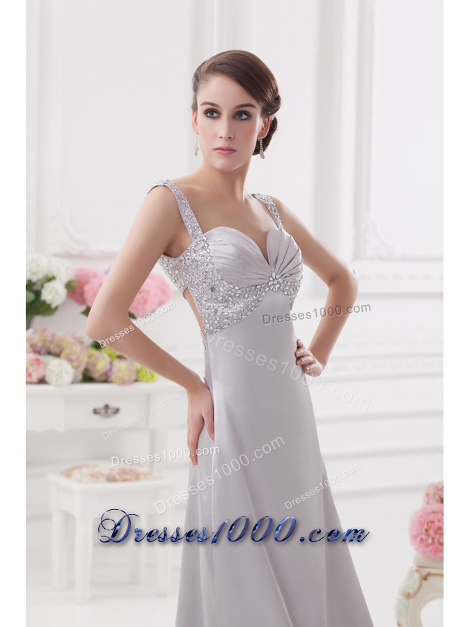 Light Grey Straps Column Prom Dress with Beading and Ruching