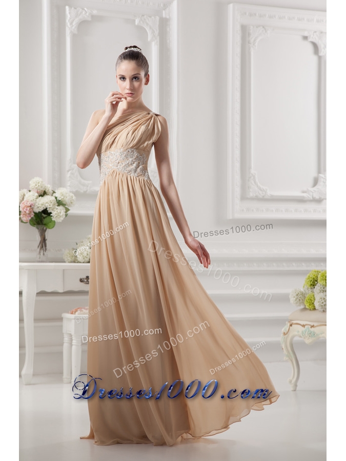 One Shoulder Ruching and Appliques Chiffon Prom Dress