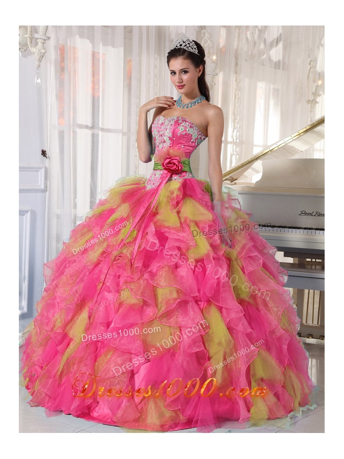 Appliques Organza Sweetheart Fashionable Quinceanera Dress with Detachable Sash