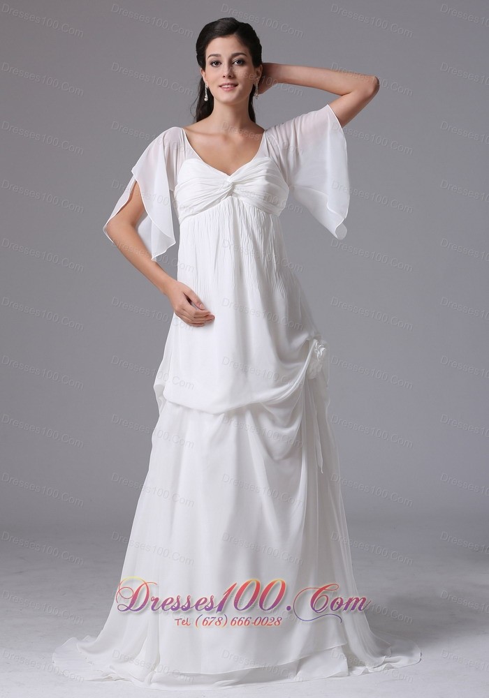 Sassy Scoop Short Sleeves Wedding Dress Ruches