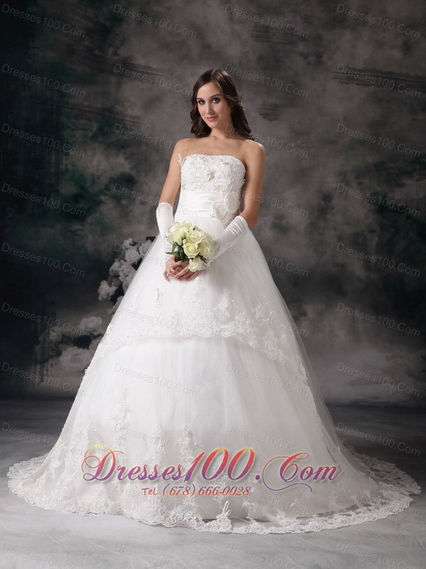 A-line Strapless Bridal Dress Taffeta Lace Court Train