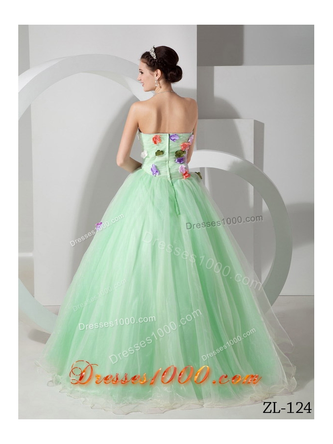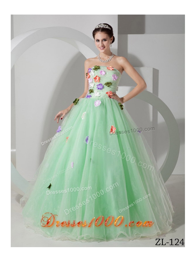 Princess Strapless Prom Dress with Hand Made Flowers