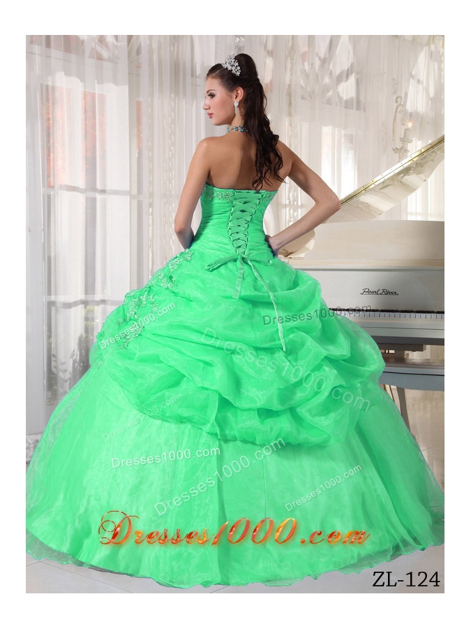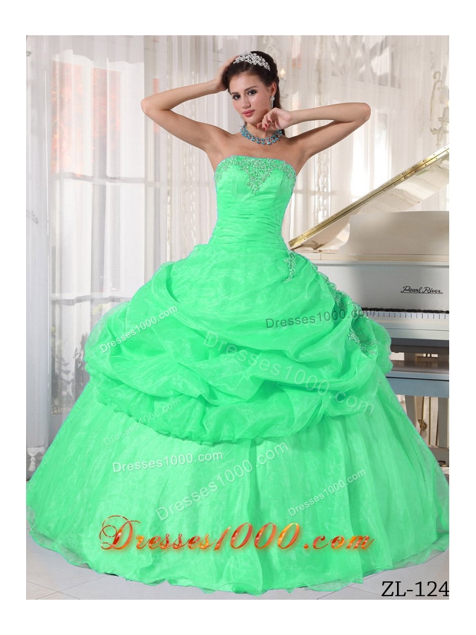 2014 Lovely Ball Gown Strapless Quinceanera Dress in Green with Appliques