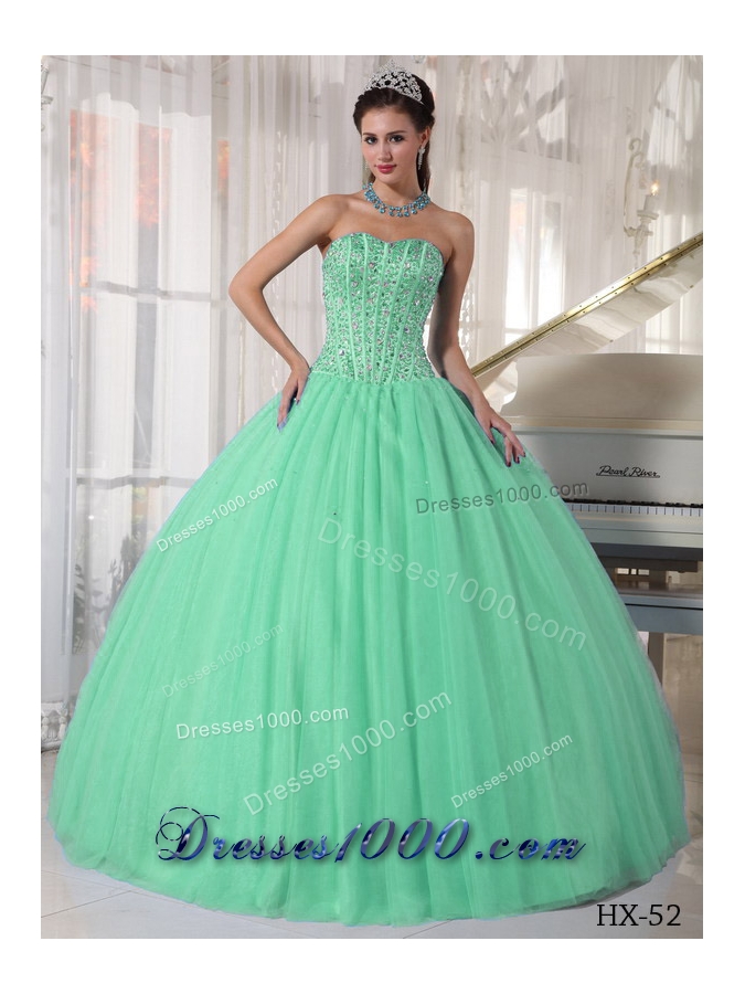 Elegant Ball Gown Sweetheart Quinceanera Dress in Apple Green with Beading and Appliques