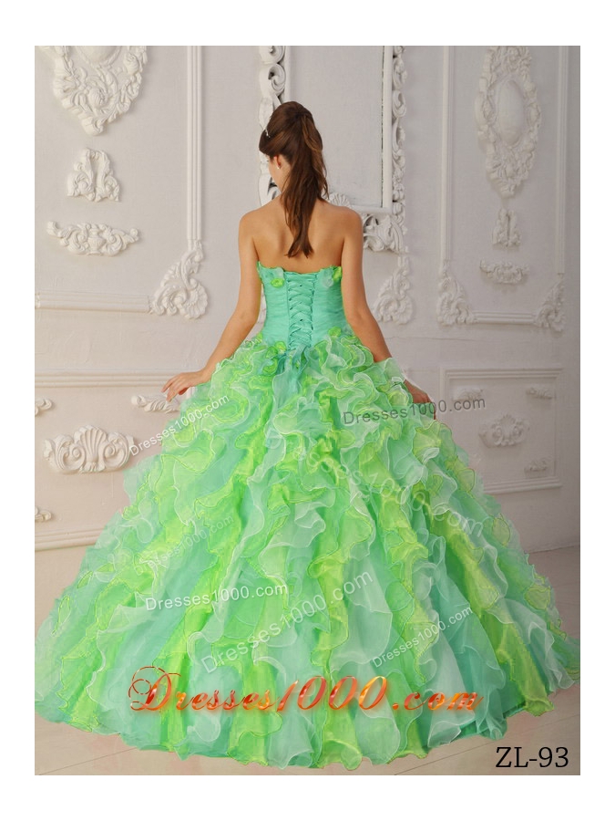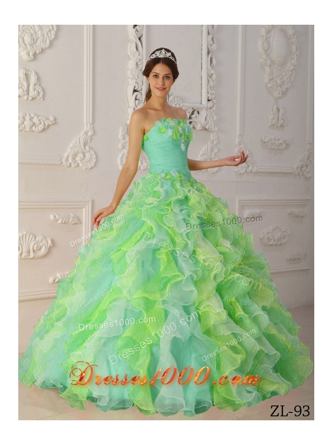 Popular Multi-Color Ball Gown Strapless with Hand Flowers and Ruffles Quinceanera Dress
