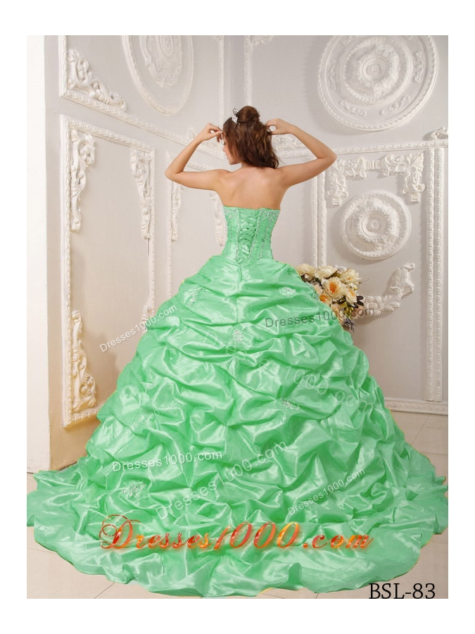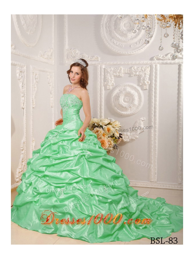 Elegant Apple Green Ball Gown Strapless with Appliques and Beading Quinceanera Dress