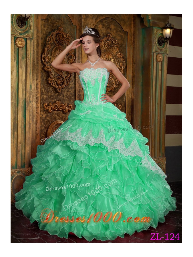 Popular Apple Green Ball Gown Strapless with Ruffles Quinceanera Dress