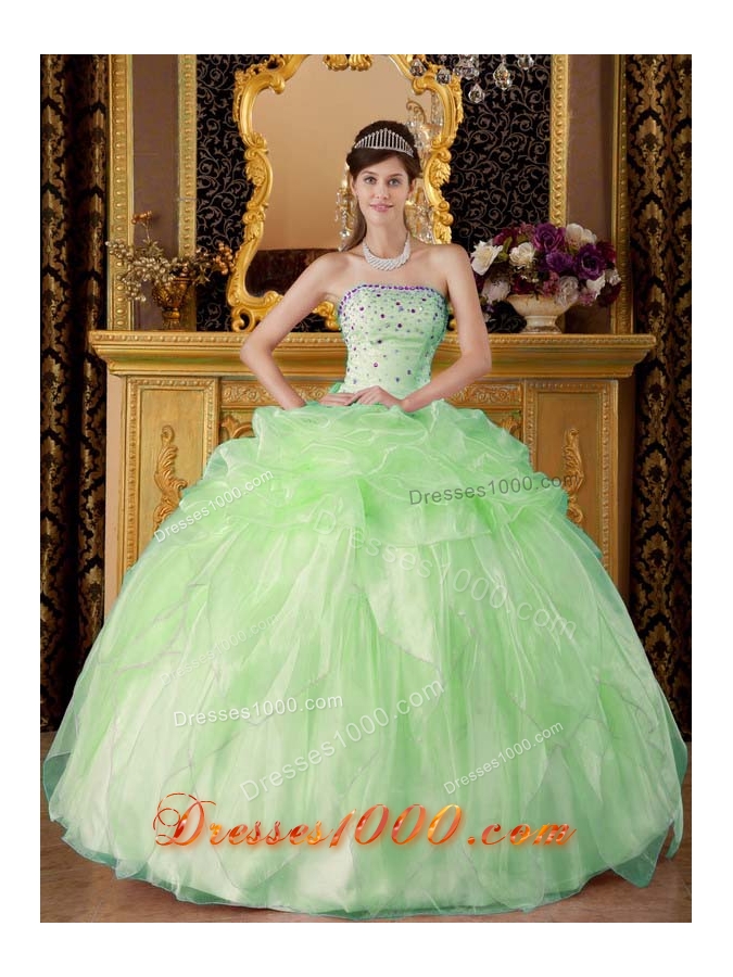 2014 Cute Apple Green Ball Gown Strapless Beading Quinceanera Dress