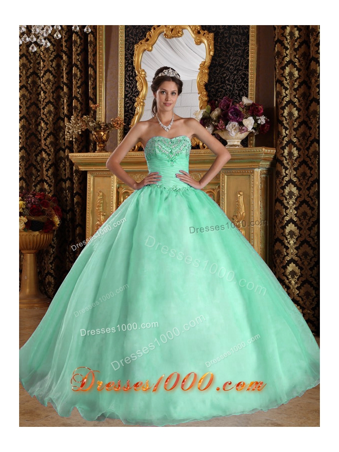 Quinceanera Dress in Apple Green Ball Gown Sweetheart with Beading and Appliques