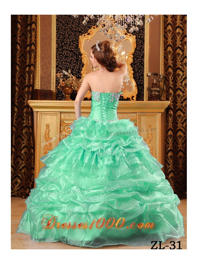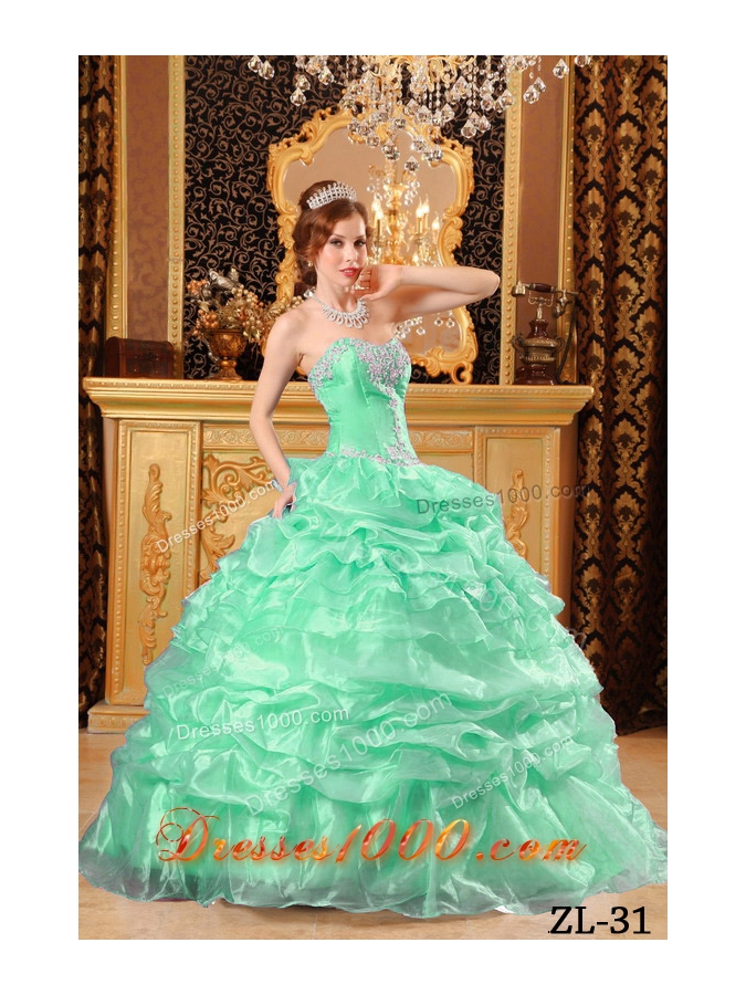Sweetheart Quinceanera Dress in Apple Green with Appliques and Pick-ups