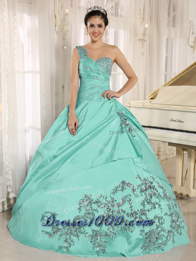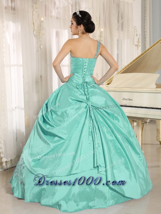 2014 Apple Green Beading Quinceanera Dress One Shoulder With Appliques