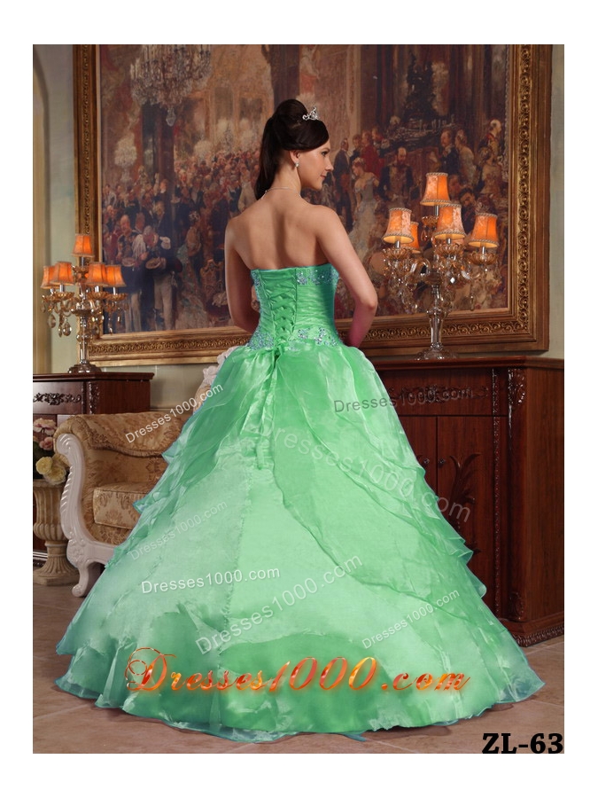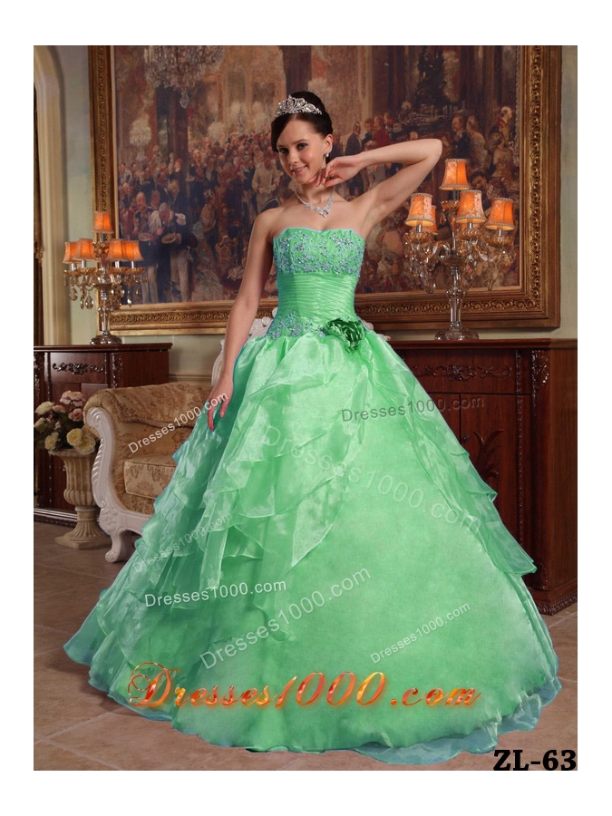 Elegant Quinceanera Dress in Green Ball Gown Strapless with Beading and Appliques