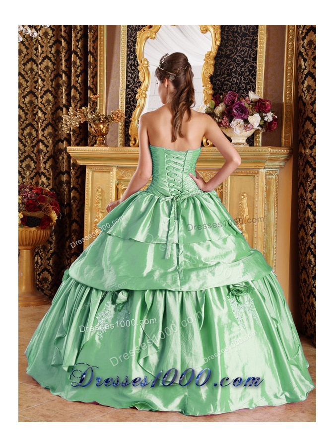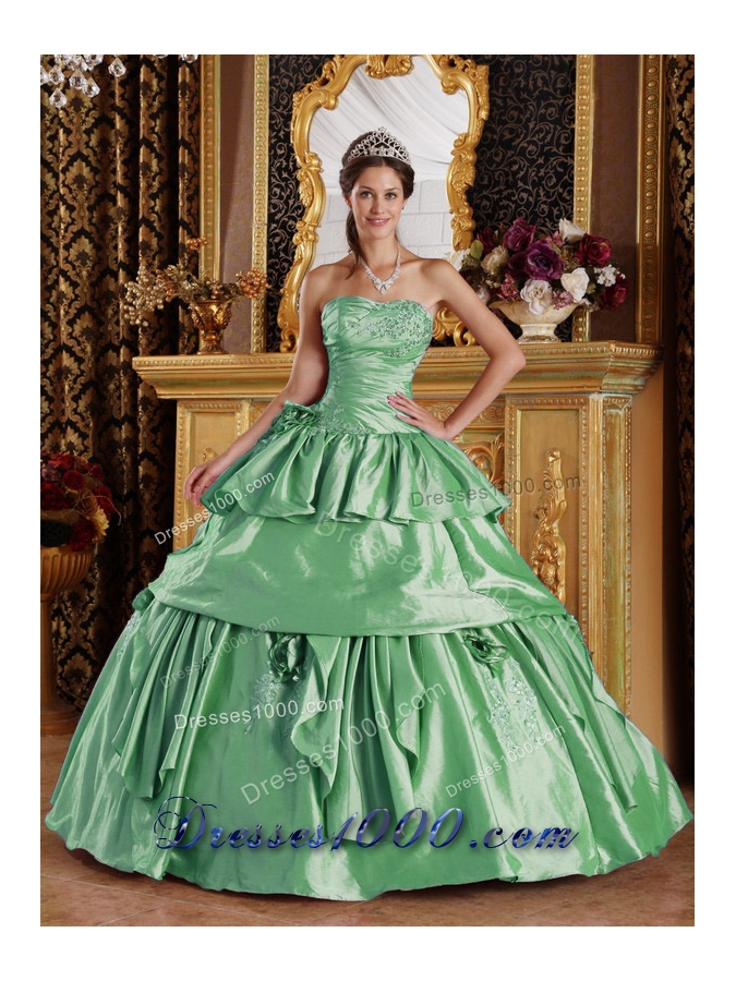 Popular Ball Gown Strapless in Green with Beading and Hand Made Flower Quinceanera Dress