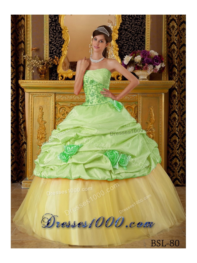 Colourful Ball Gown Strapless with Hand Made Flowers and Beading Quinceanera Dress