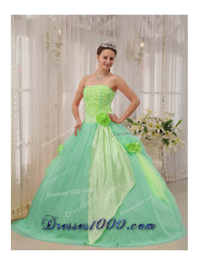 Colourful Ball Gown Strapless with Hand Made Flowers Quinceanera Dress
