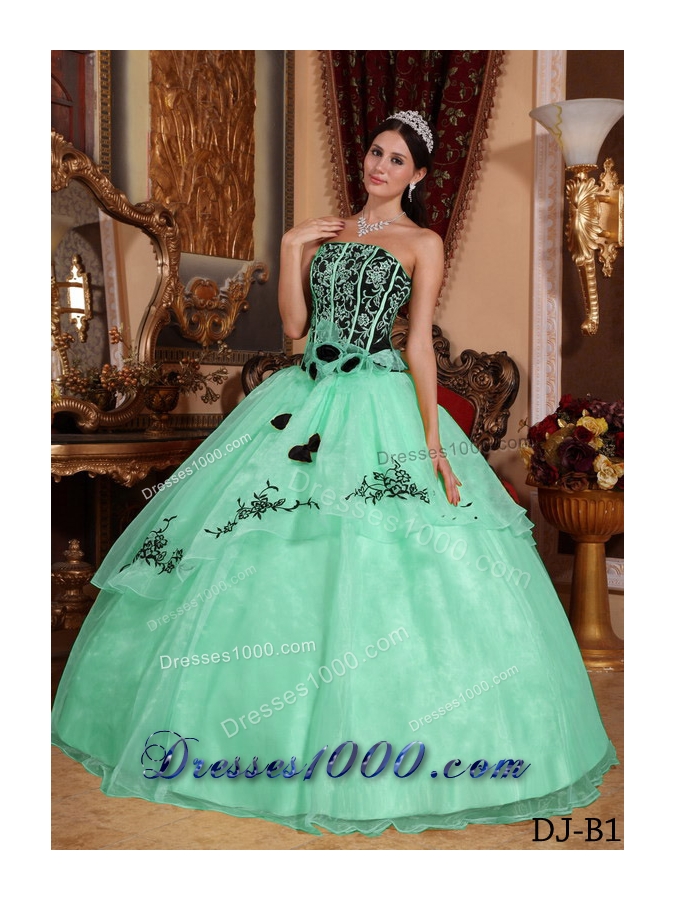 2014 Popular Apple Green Ball Gown Strapless Embroidery Quinceanera Dress with Hand Made Flowers