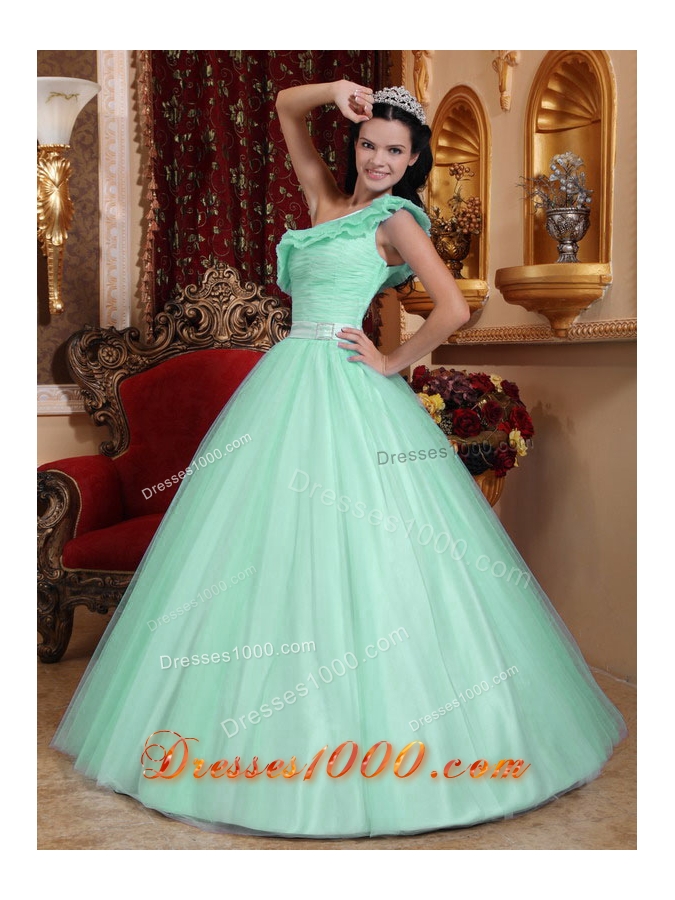 Cute One Shoulder Quinceanera Dress in Apple Green Princess with Ruching