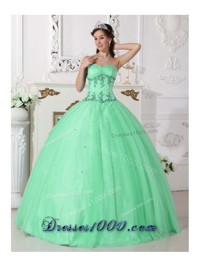 Quinceanera Dress in Apple Green Ball Gown Sweetheart with Beading and Appliques