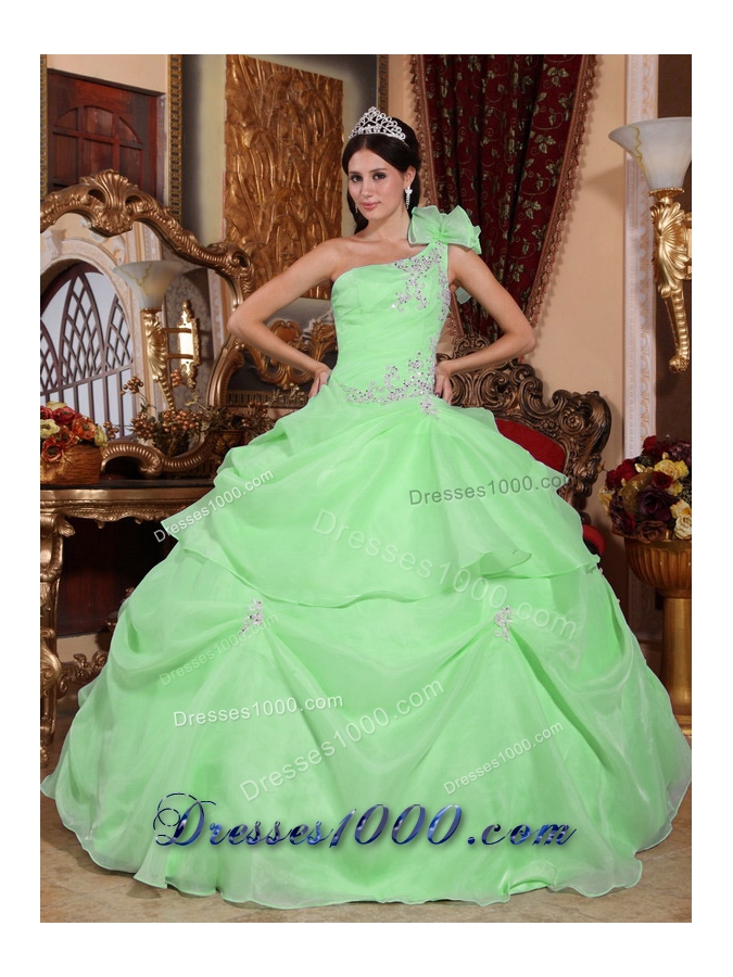 Pretty One Shoulder Quinceanera Dress in Green Ball Gown with Appliques