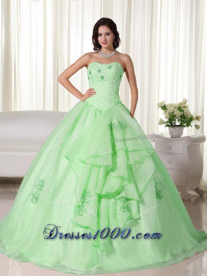 2014 Pretty Spring Green Ball Gown Strapless Embroidery Quinceanera Dress