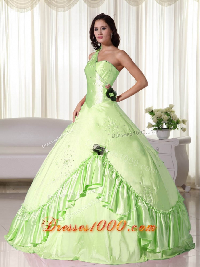 2014 One Shoulder Quinceanera Dress in Yellow Green Ball Gown with Beading