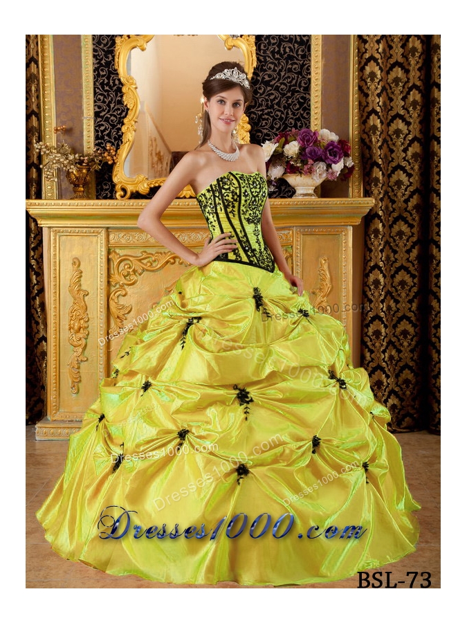 Elegant Yellow Strapless Embroidery Taffeta Quinceanera Dresses