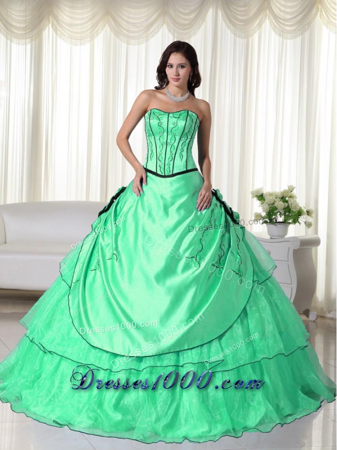 2014 Gorgeous Apple Green Ball Gown Strapless Beading Quinceanera Dress