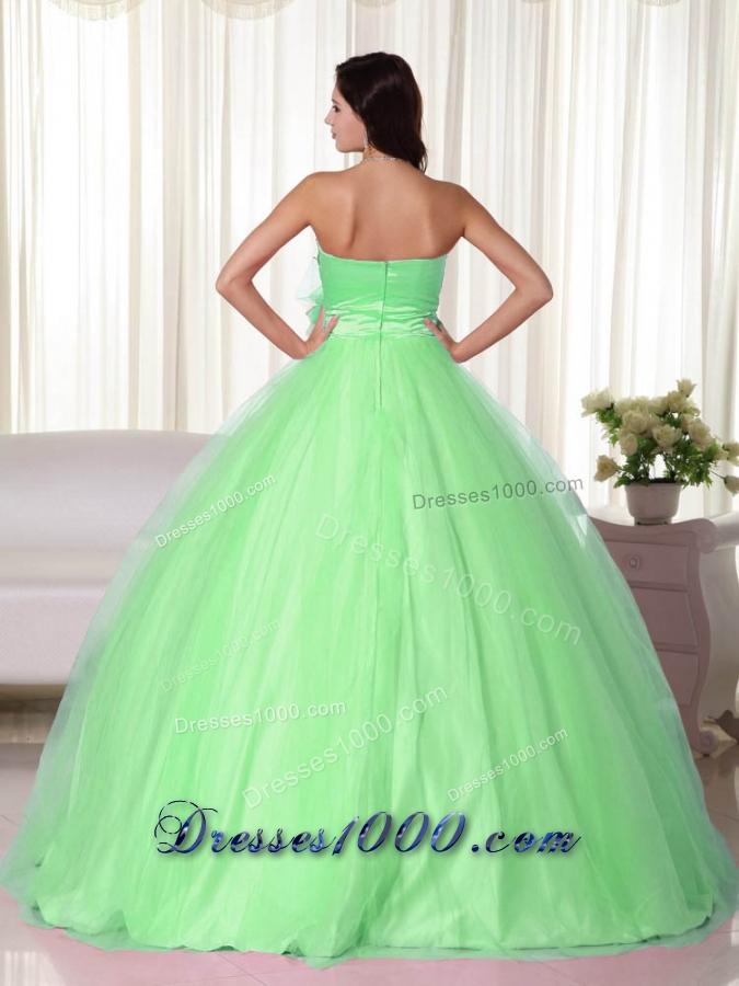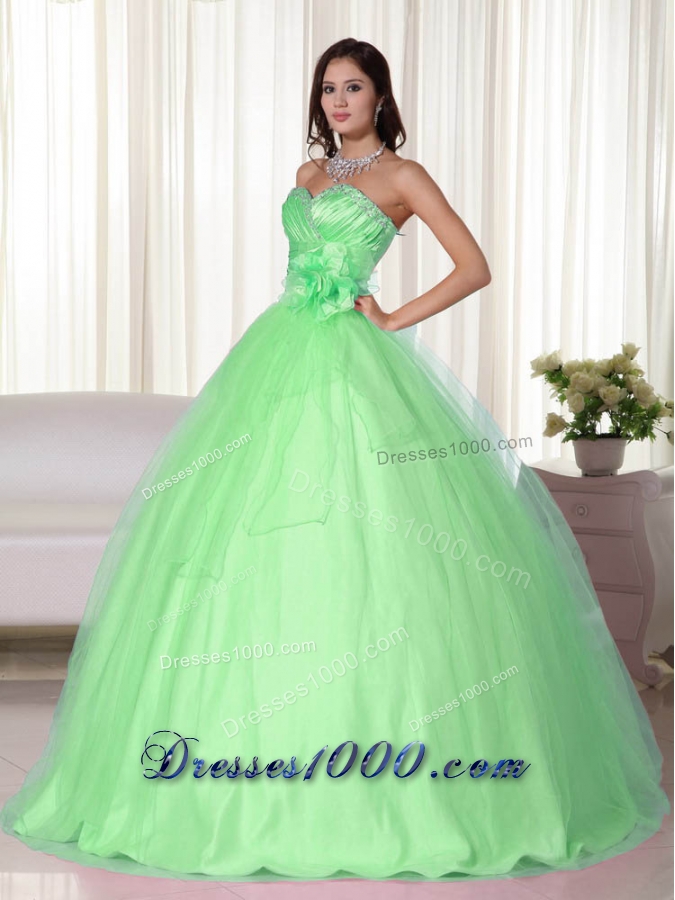2014 Affordable Sping Green Gown Sweetheart Beading Quinceanera Dress with Hand Made Flower